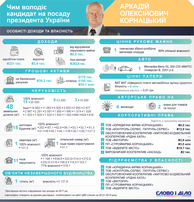 Выборы-2019: Корнацкий задекларировал конюшню и 30 миллионов гривен наличными