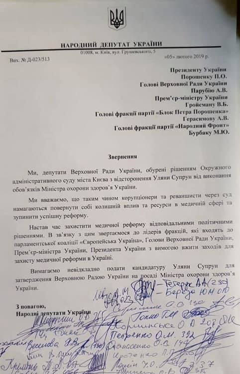 Он также опубликовал копию обращения от народных депутатов к президенту Украины Петру Порошенко, главе Верховной Рады Андрею Парубию, премьер-министру Владимиру Гройсману, главе фракции «Блок Петра Порошенко» Артуру Герасимову и руководителю фракции «Народного фронта» Максиму Бурбаку.