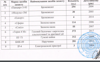 В свою очередь, Управление полиции охраны, которое проиграло торги, среди специальных средств указывает несколько сотен бронежилетов, защитных касок, газовых баллончиков «Терен 4», наручников, резиновых дубинок, а также 38 единиц огнестрельного оружия.
