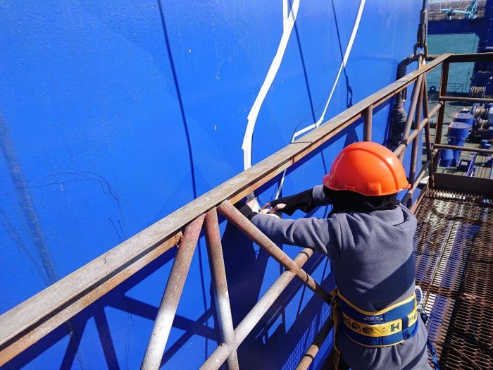Ильичевский Судоремонтный Завод принял для планового ремонта паром Kaunas. Среди прочих работ заказчик потребовал изобразить на судне новый логотип, для чего вместо заводских маляров понадобилось привлечь художников.