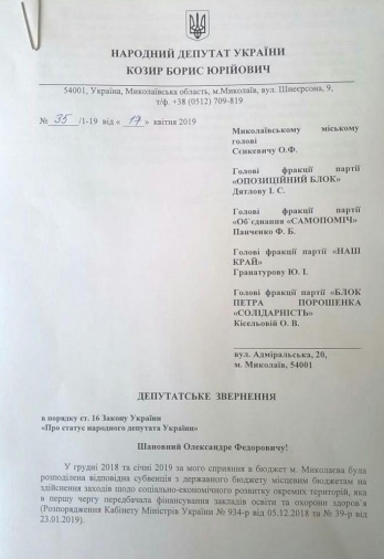 Об этом идет речь в его депутатском обращении к городскому голове Николаева Александру Сенкевичу и руководителям фракций горсовета, сообщает пресс-служба народного депутата.