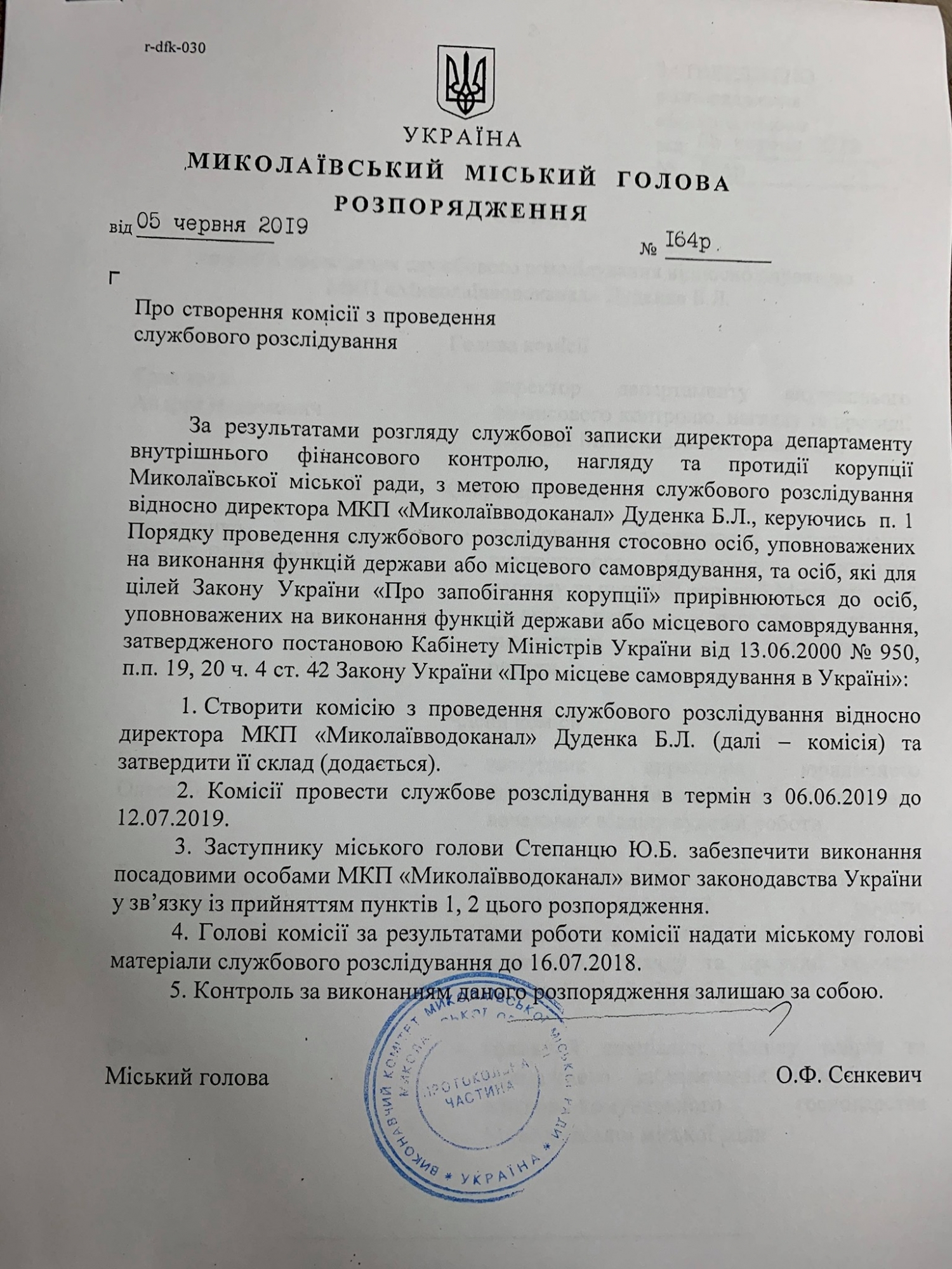Департамента финансового контроля и противодействия коррупции Николаевского горсовета проведет служебное расследования в отношении директора КП «Николаевводоканал» Бориса Дуденко из-за закупок топлива по завышенным ценам.