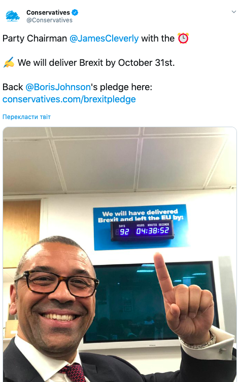 Также аналогичный механизм установлен в офисе правящей Консервативной партии - штаб-квартире тори. Часы отсчитывает секунды и минуты до 23:00 31 октября по британскому времени. По среднеевропейскому Brexit состоится в полночь 1 ноября.