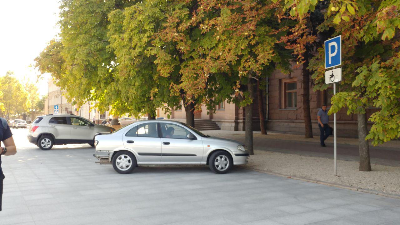 Сегодня, 11 сентября, несколько автомобилей устроили незаконную парковку на не введенной в эксплуатацию Соборной площади из-за отсутствия парковочных мест.