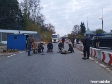 На блокпосту перед Славянском колонну остановили и некоторое время не пропускали из-за якобы негласного распоряжения. В связи с этим волонтеры и ветераны перекрыли движение транспорта, сев посреди дороги.