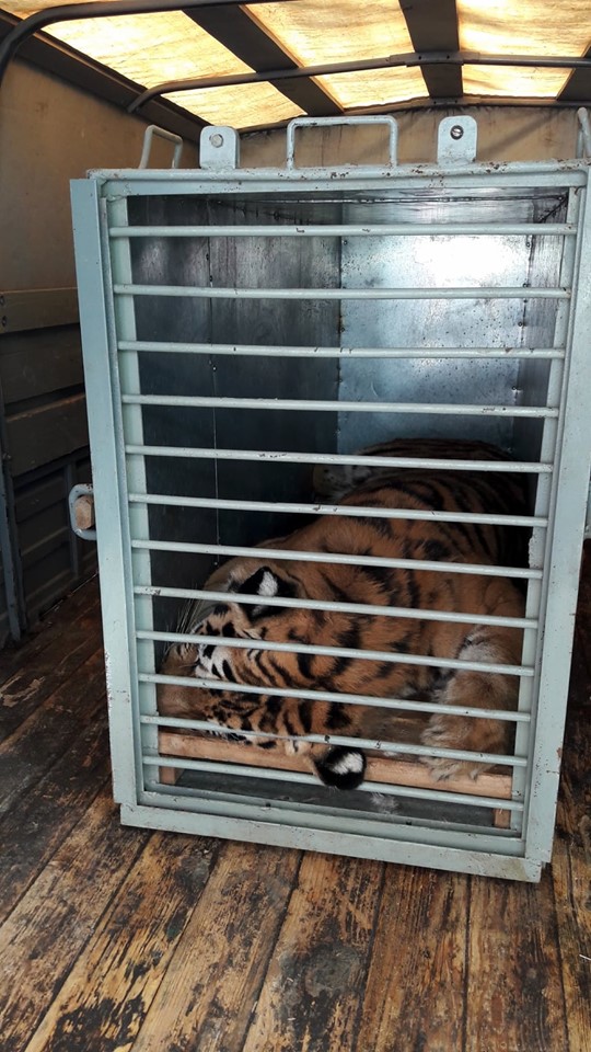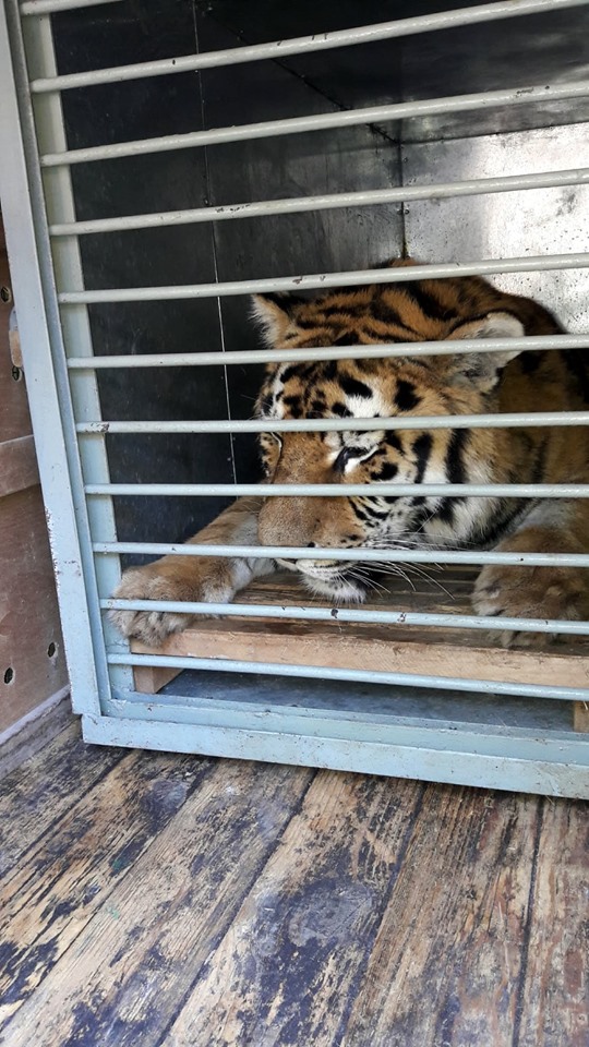Из Николаевского зоопарка в Одессу перевезли амурского тигра Авгура. Там его ждет новый вольер.