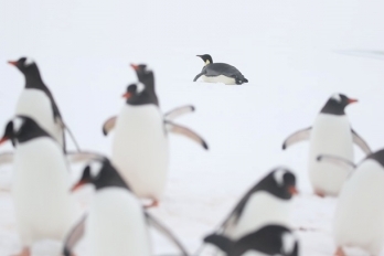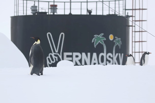 Императорский пингвин решил проведать антарктическую станцию Академик Вернадский, где круглый год работают украинские полярники.