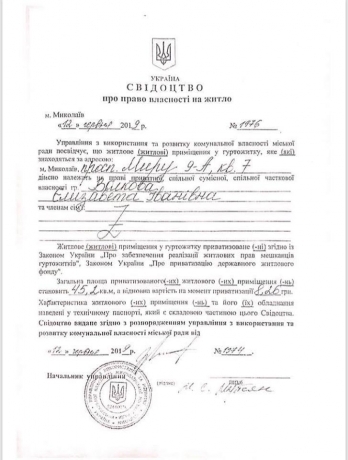 Начальник управления коммунального имущества Николаева заявил о подделке своей подписи и незаконной выдаче документов на квартиру