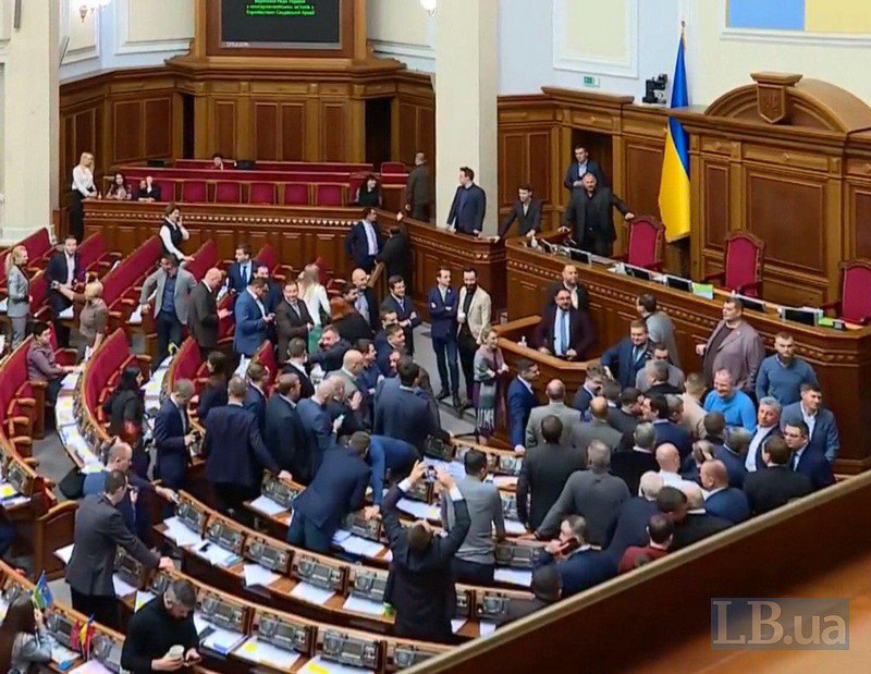 Нардепы от «Слуги народа» выстроились возле трибуны, чтоб предотвратить срыв заседания Рады