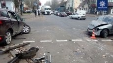 В центре Николаева столкнулись Volvo и Honda - водитель по подсказке навигатора выехала на улицу с односторонним движением