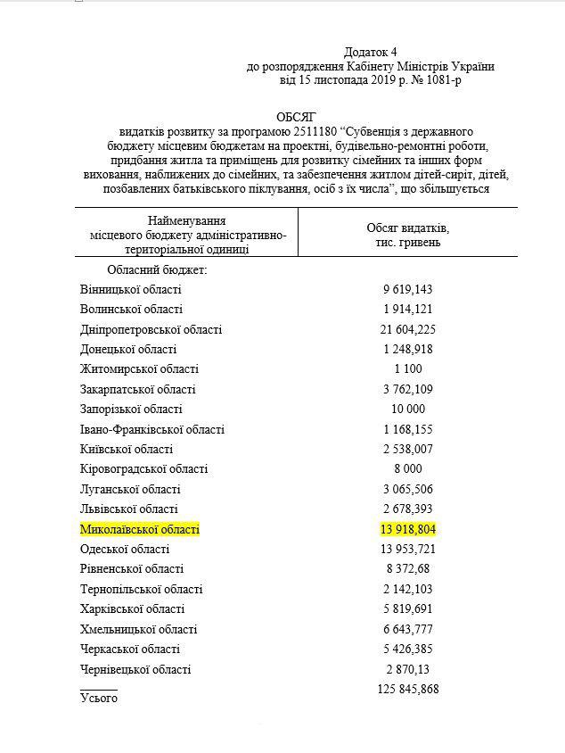 В этом году Николаевщина получила в целом 58,2 миллиона на покупку жилья детям-сиротам