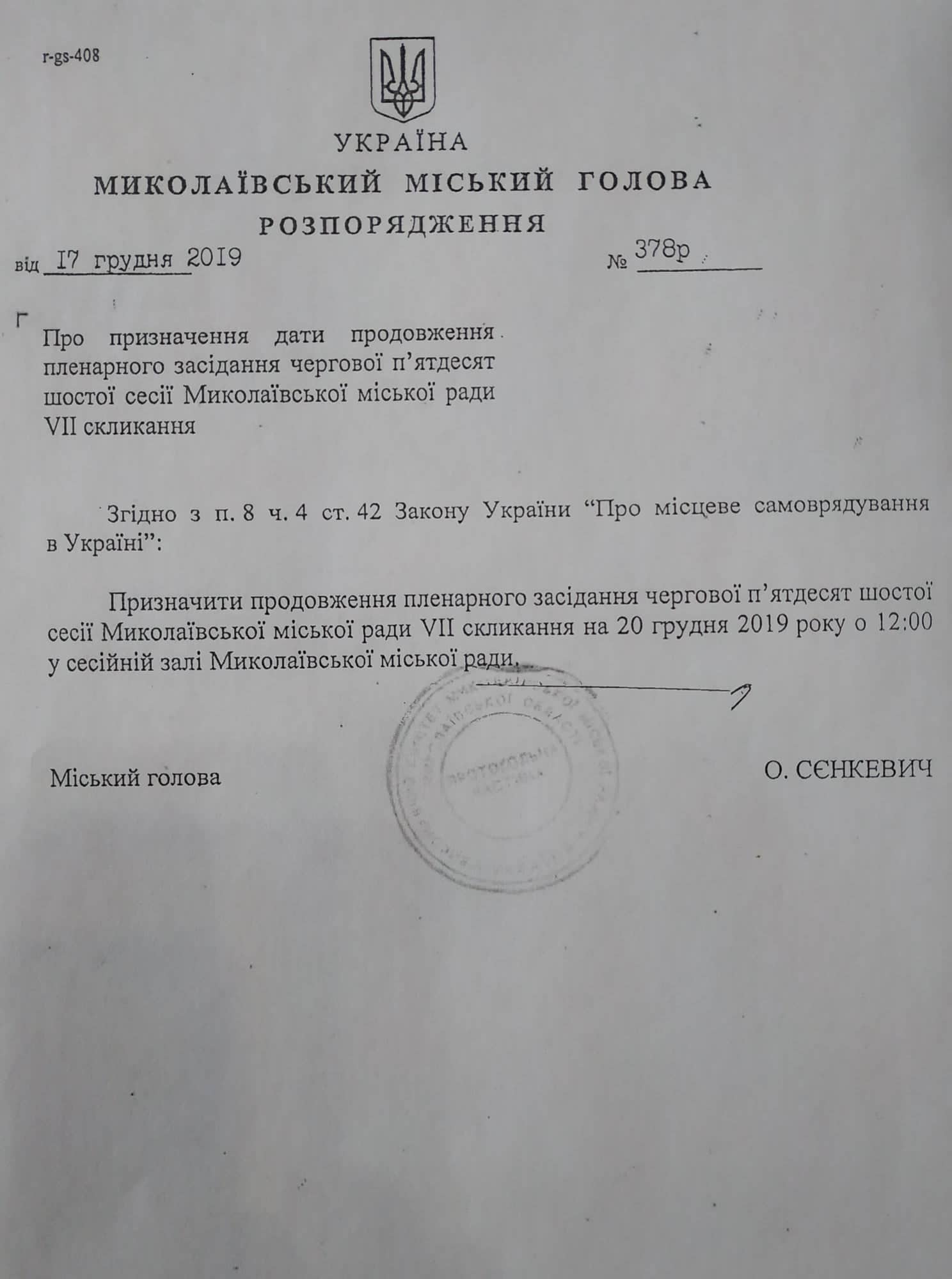 Николаевский городской голова Александр Сенкевич созывает третье пленарное заседание очередной 56-й сессии городского совета на пятницу, 20 декабря.