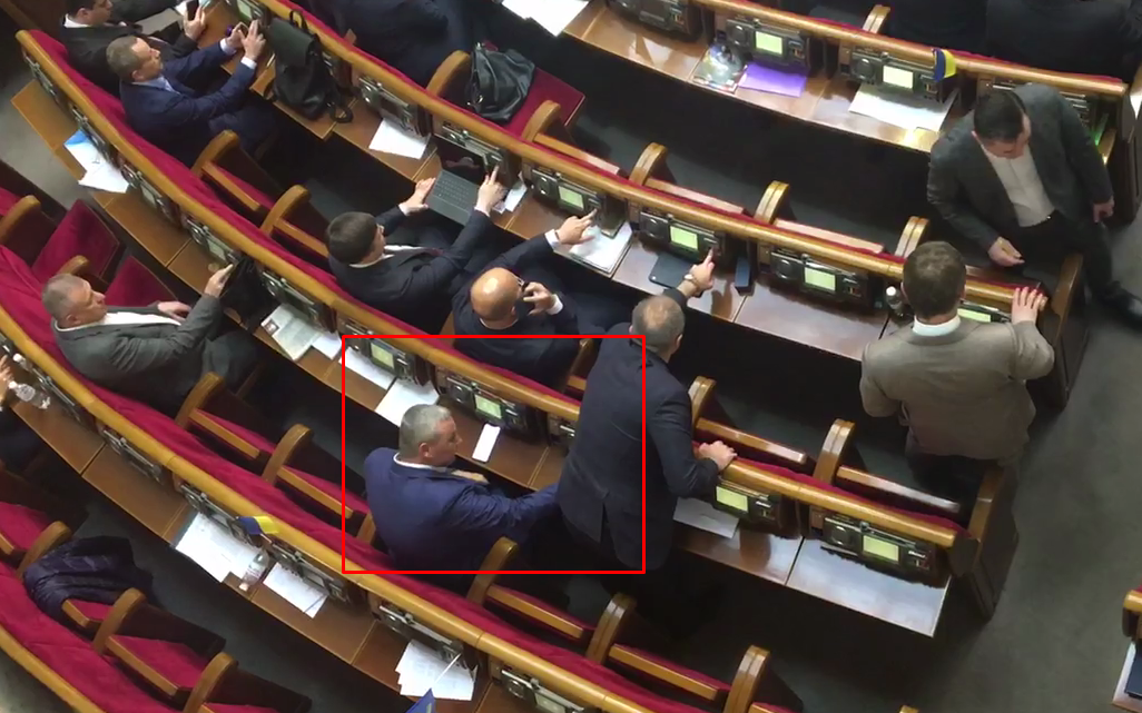На видео видно, как во время голосования за поправку №1223 к законопроекту об обращении земель (№2178-10) Поляк сначала голосует на пустом месте справа (место закреплено за депутатом группы «Доверие» Василием Петевкой), а затем нажимает кнопку на своем пульте.
