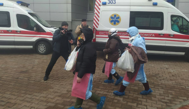 Вечером 20 февраля их привезли в медицинский центр в поселке Новые Санжары в Полтавской области. Местные жители целый день блокировали дорогу, чтобы не пропустить автобусы с эвакуированными и требовали не размещать их в местном медучреждении. Впрочем, когда автобусы подъехали. правоохранители оттеснили их и освободили дорогу.