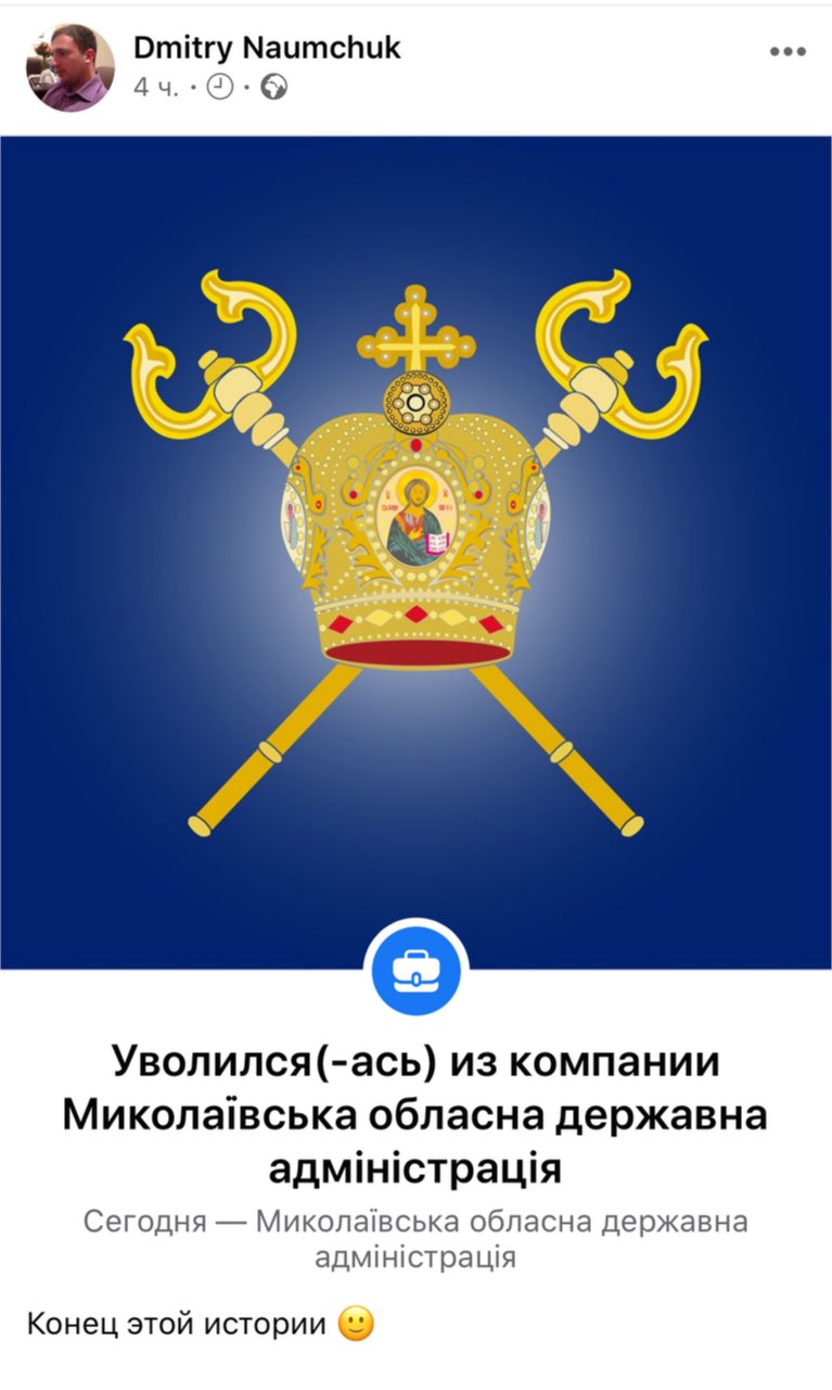 «Две недели назад мы приняли взвешенное решение о завершении работы в пресс-службе Николаевской ОГА. С завтрашнего дня - мы там не работаем», - написал Дмитрий Наумчук в пятницу вечером, 21 февраля, в Facebook.