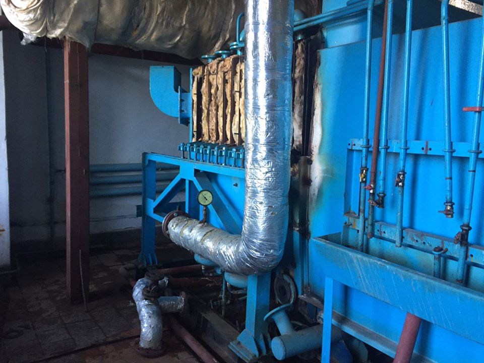 После аварийной остановки котла, выполняется разбор теплообменника, состоящий из 12-ти секций, чтобы выяснить, что именно стало причиной сбоя в работе. Каждая секция обследуется отдельно для обнаружения протечек.