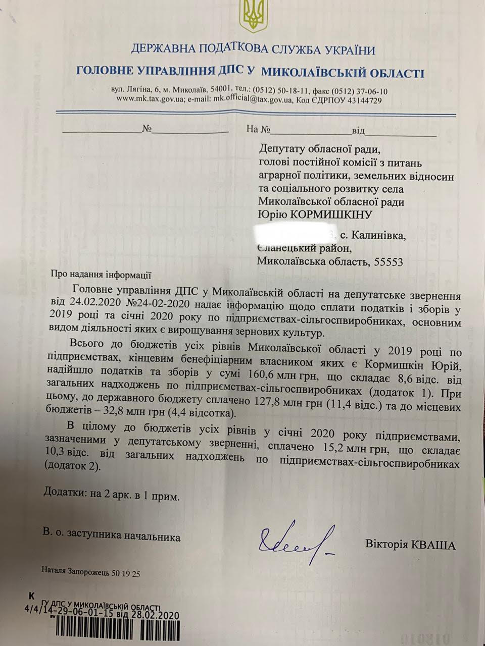 Сельскохозяйственные предприятия, которые находятся в составе группы компаний «ПАЕК», которую возглавляет депутат Николаевского областного совета Юрий Кормышкин, в 2019 году уплатили в бюджеты всех уровней Николаевской области 175 миллионов 800 тысяч гривен налогов и сборов, что составляет 8,6% от общих поступлений по предприятиях-сельхозпроизводителям области.