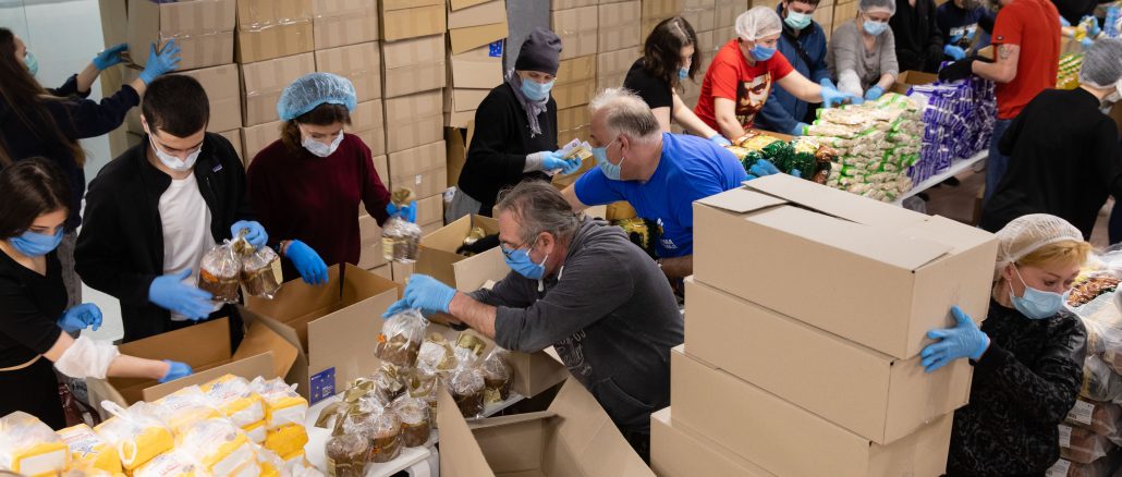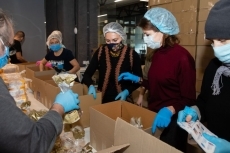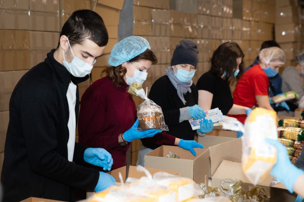Марина Порошенко, которая вместе с детьми и в эту субботу присоединилась к волонтерам, рассказала, что уже третий раз за месяц общегосударственного карантина активисты ОО «Дело общин», «Солидарная молодежь», народные депутаты и партийцы, и просто неравнодушные люди собираются в офисе «Европейской Солидарности» для подготовки продуктовых наборов.