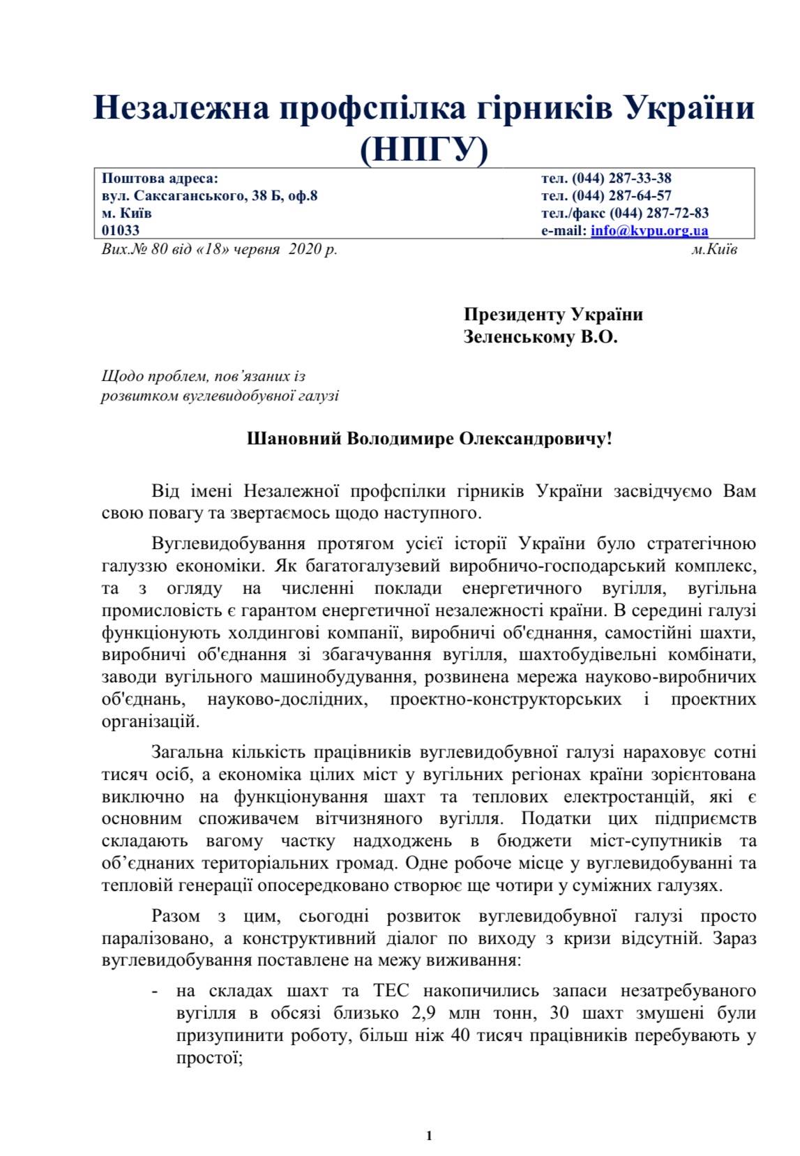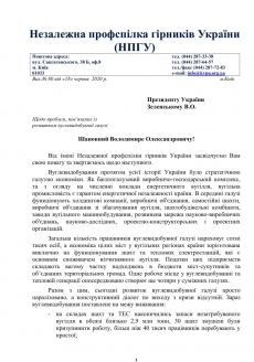 Он рассказал, что по поручению шахтерских коллективов направил обращение к президенту Украины и председателю Верховной Рады относительно необходимых мер для решения проблем, связанных с развитием угледобывающей отрасли.