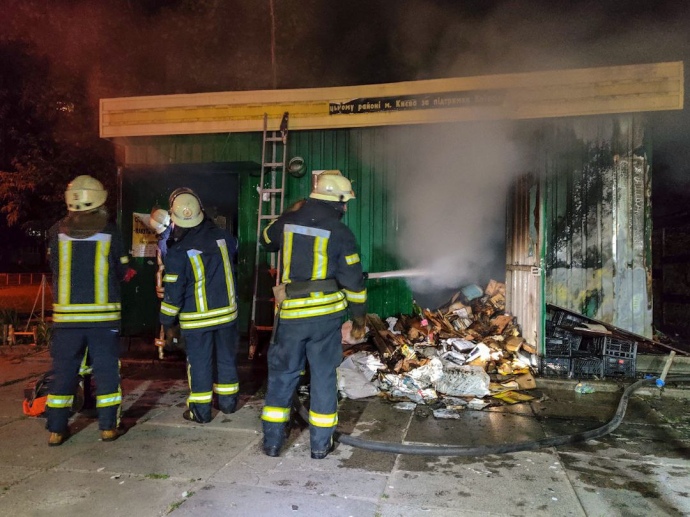 Возгорание возникло около 2:09 ночи 26 июня в киоске по улице Ревуцкого, 7-В в Дарницком районе столицы. Огонь распространился на рядом расположенный металлический павильон по приему вторичного сырья.