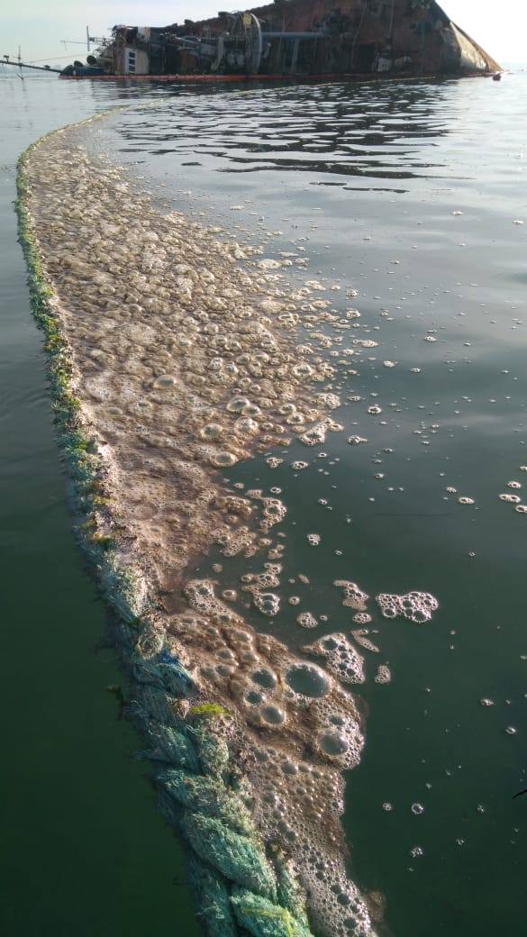 В Одессе, 16 июля, матросы-спасатели спасательно-водолазной службы обнаружили вытечку нафтопродуктов с танкера «Delfi».