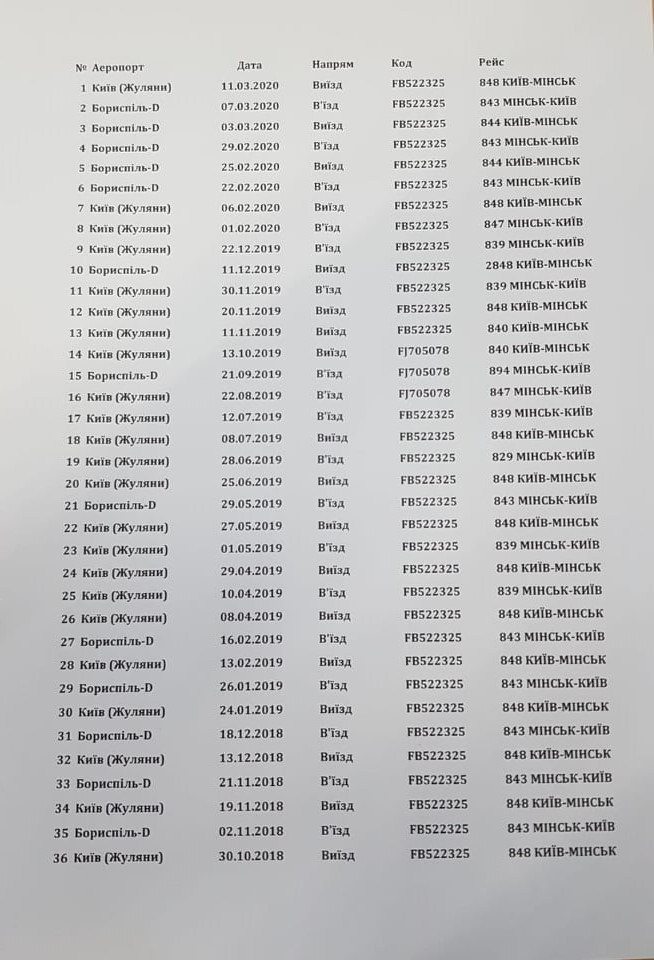 На копии графика перелетов Жвании видно, что в последние несколько лет он один-два раза в месяц летает на несколько дней в Москву.