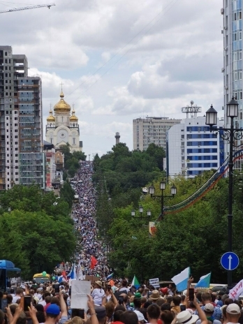 В Хабаровске прошла 15-я по счету несанкционированная акция в поддержку бывшего губернатора края Сергея Фургала.