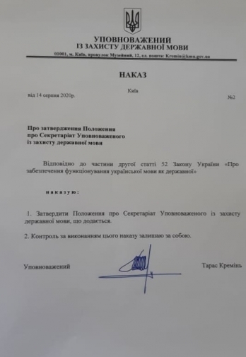 5 августа в Украине создали отдельный институт уполномоченного по защите государственного языка, а сегодня он официально начал свою работу.