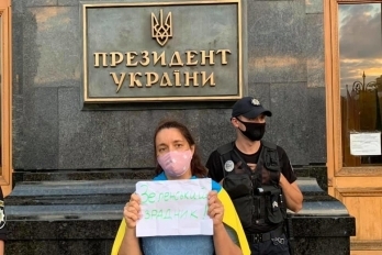 Активисты проводят акции протеста под Офисом Президента, а также под резиденцией главы государства Владимира Зеленского в Конча-Заспе, чтобы донести свою позицию относительно идеи об участии представителей ОРДО в совместном патрулировании в районе населенного пункта Шумы.