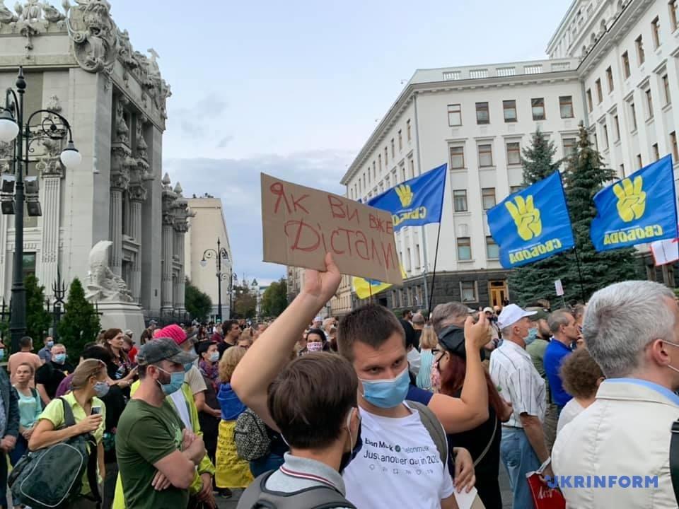 — Люди собираются под Офисом Президента на митинг, который был спровоцирован действиями власти относительно присутствия представителей «ДНР» или военных Российской Федерации на позициях Вооруженных сил Украины. Людей это очень возмутило, поэтому была анонсирована акция под Офисом Президента. Наши друзья анонсировали акцию в Конча-Заспе под домом Зеленского. И она также там сейчас идет. Это скоординированные две акции, целью которых является недопущение проведения совместных инспекций на позициях ВСУ, — сказал ветеран АТО и общественный деятель Александр Погребинский.