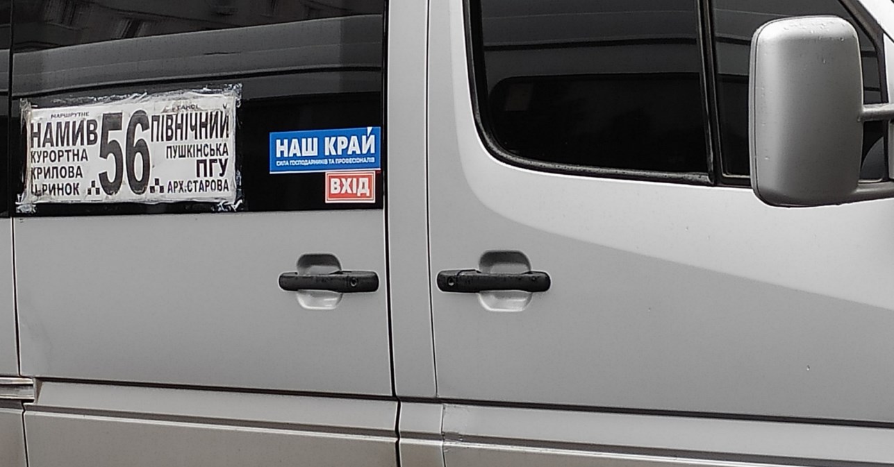 На маршрутках фирмы кандидата в депутаты горсовета Николаева от «Нашего края» расклеили листовки партии
