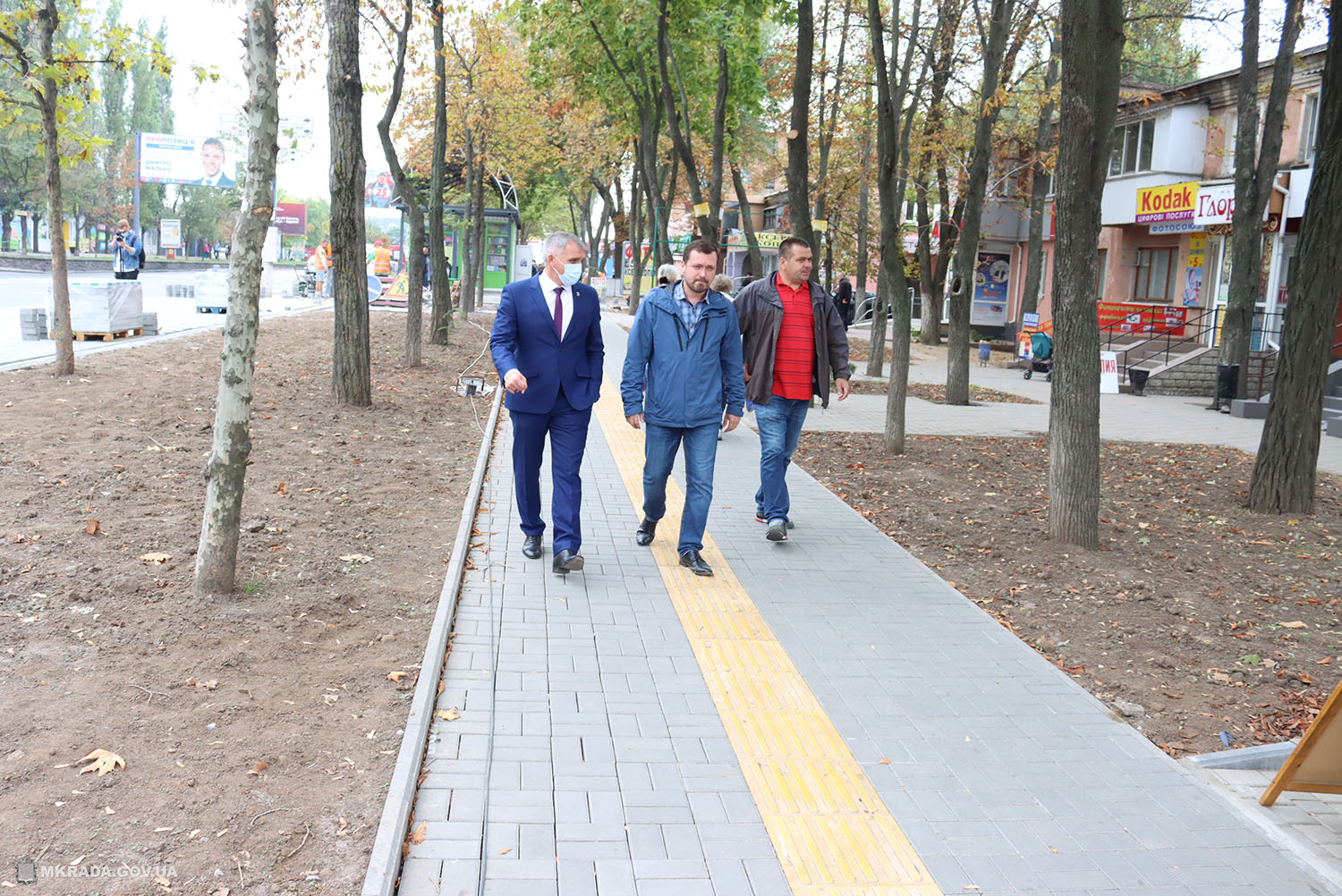 Подрядчик снял старое, изуродованное покрытие, вместо которого положил современную тротуарную плитку. Кроме того, было установлены тактильные элементы, которые необходимы для слабовидящих. На данный момент для безопасности пешеходов у светофоров и остановок устанавливают защитные ограждения.
