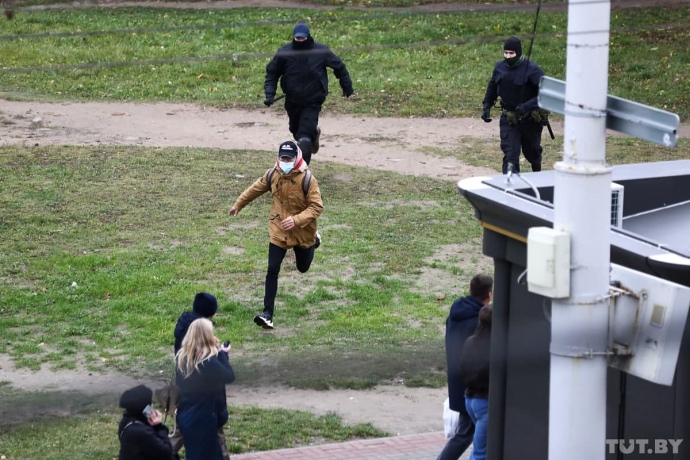 В воскресенье, 8 ноября, в столице Беларуси продолжаются массовые акции протеста. ОМОН охотится на участников митинга, очевидцы рассказывают, что слышны выстрелы.