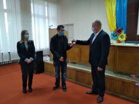 Ключи от нового жилья передали молодому врачу-хирургу Дмитрию Гравченко уроженцу с. Маложеневка Еланецкого района. Получив в 2017 году специальность врача, все это время он проработал в Еланецкой центральной районной больнице.