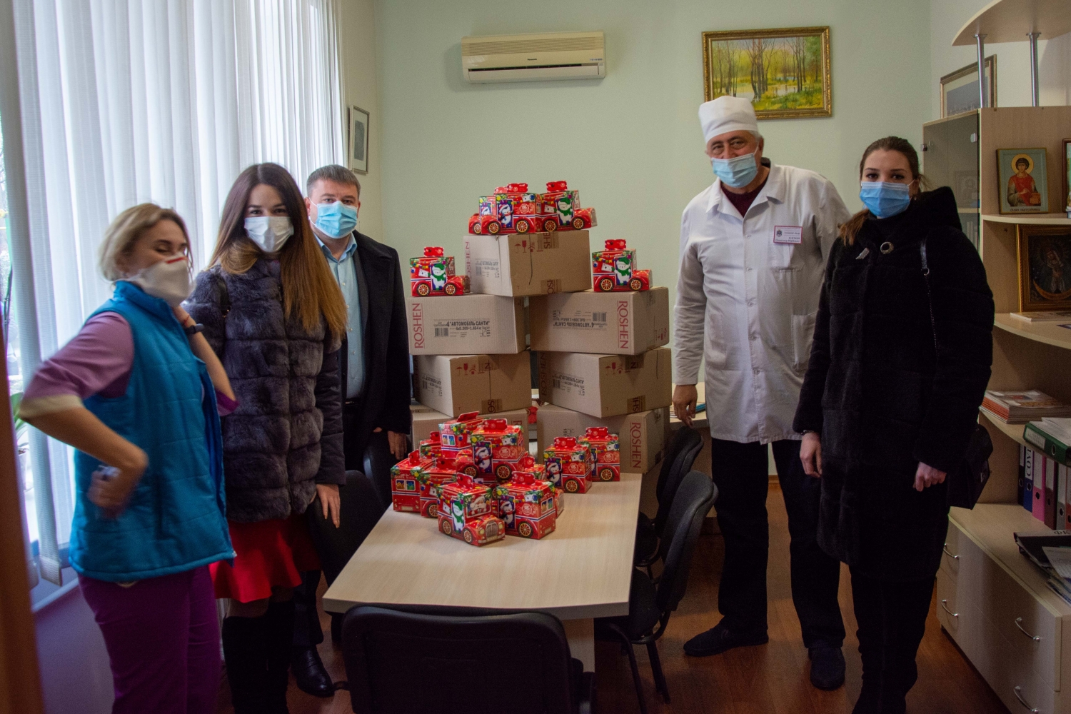 Сладкие подарки команда «оппозиционеров» вручила главным врачам Николаевской городской детской больницы №2 и Николаевской областной детской больницы. В виду карантинных ограничений вручить подарки лично не удалось, поэтому в день праздника подарки детки получат от медицинских работников.