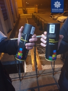 Около 22:00 патрульные заметили парней, которые с помощью баллончиков с черной краской расписывали стены надписями с рекламой наркотических средств.
