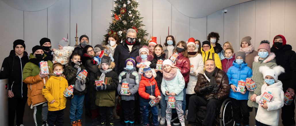 Петр и Марина Порошенко устроили новогодний праздник для воспитанников детдомов. В зимнем городке ROSHEN Winter Village 23 детей, которые воспитываются в детдоме семейного типа семьи Дейкун, в детдоме «Надежда» из села Мокрец на Киевщине и броварском Центре реабилитации детей с инвалидностью развлекались, катались на коньках и, конечно, получали новогодние подарки.