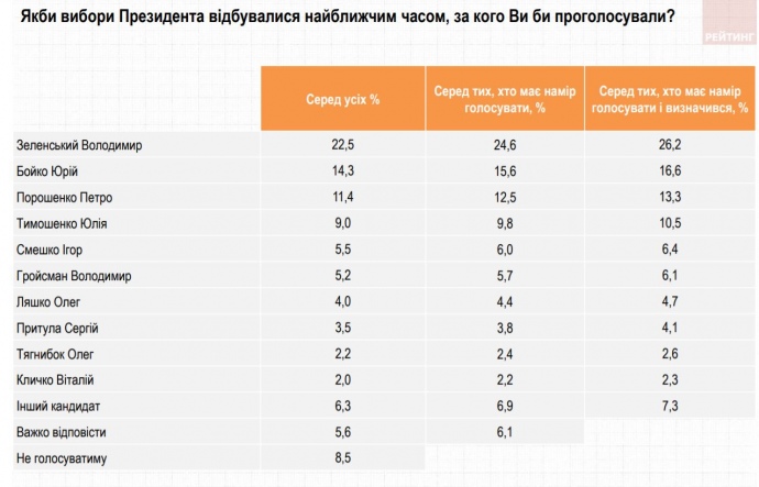 Если бы в ближайшее время в Украине выбирали президента, то во второй тур вышли бы Зеленский и Бойко, — Опрос
