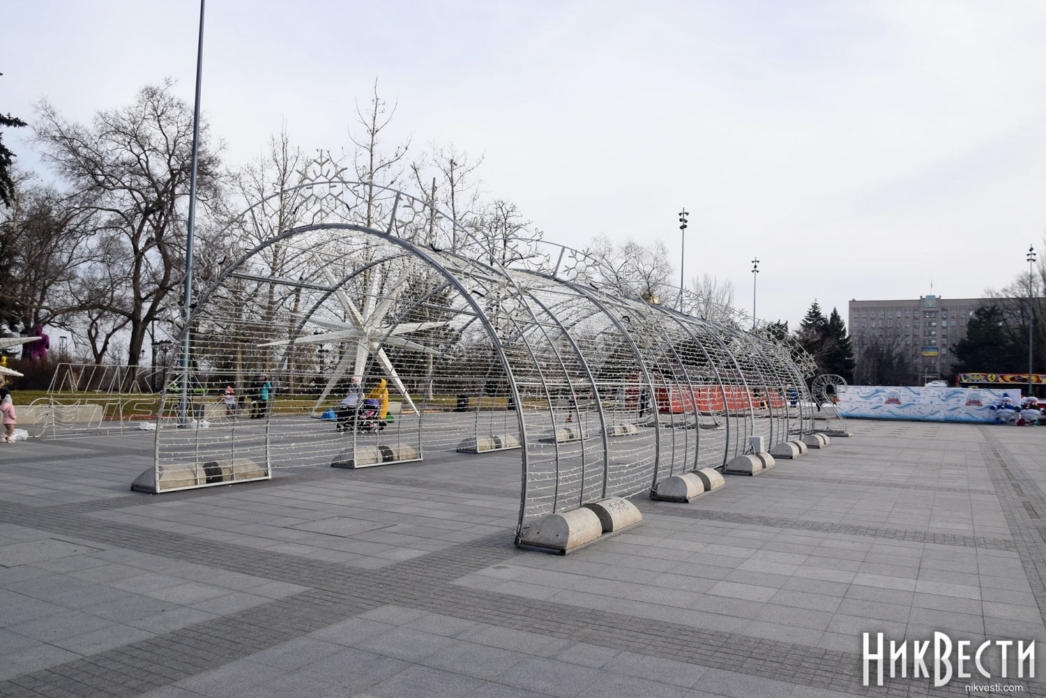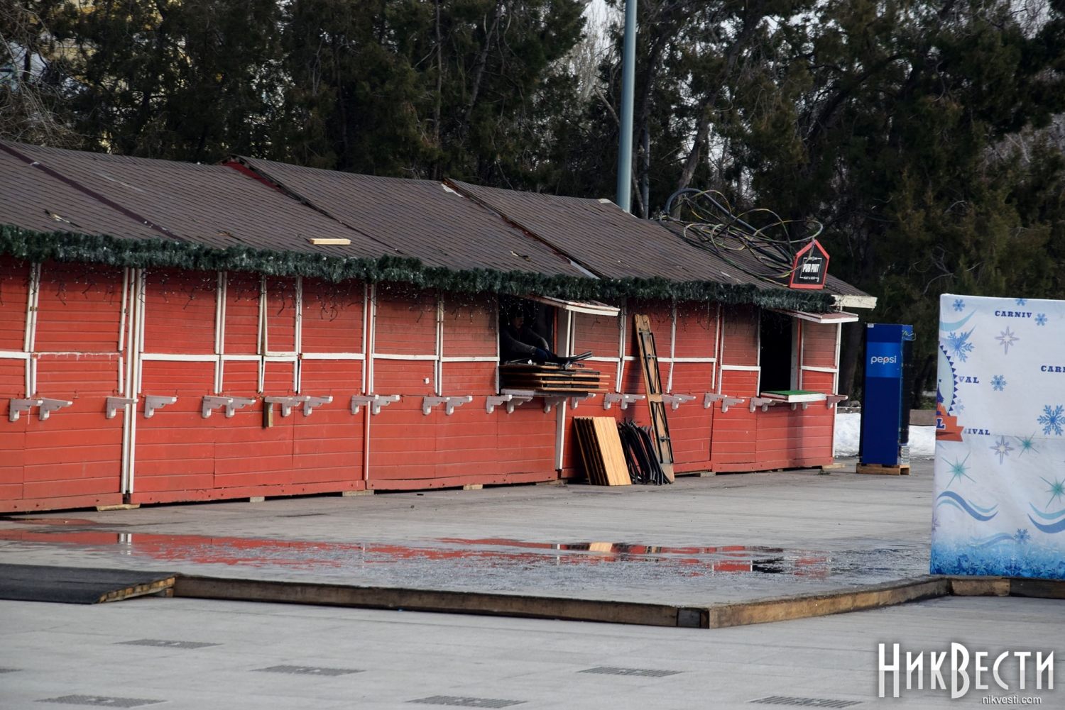 Новогоднюю елку на Соборной площади в Николаеве демонтируют после христианского праздника Крещения 19 января.
