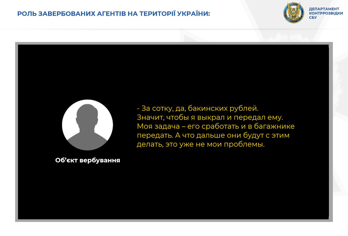 Агенты также должны были похитить и нелегально переместить в страну-агрессора одного из бывших командующих Сил специальных операций. За это российская спецслужба предлагала вознаграждение в 100 тысяч долларов.