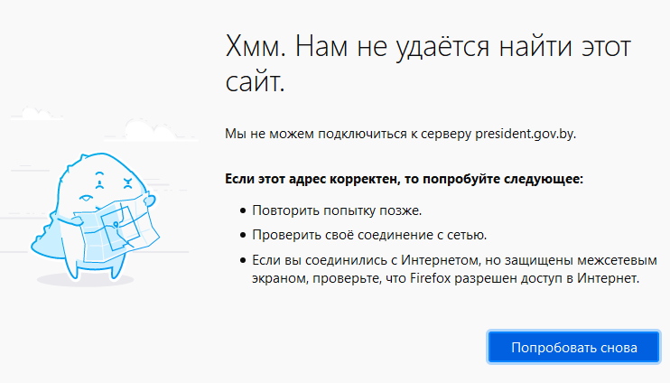 В интернете перезапустили именной сайт Лукашенко - president.gov.by. Он сломался в первый день работы. Пользователи сообщают, что браузер не может отыскать сервер.