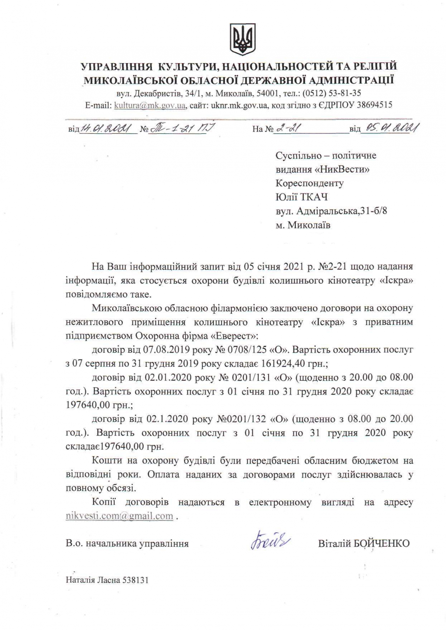 На охрану здания бывшего кинотеатра «Искра» в Заводском районе Николаева из областного бюджета ежегодно тратят около 400 тысяч гривен.