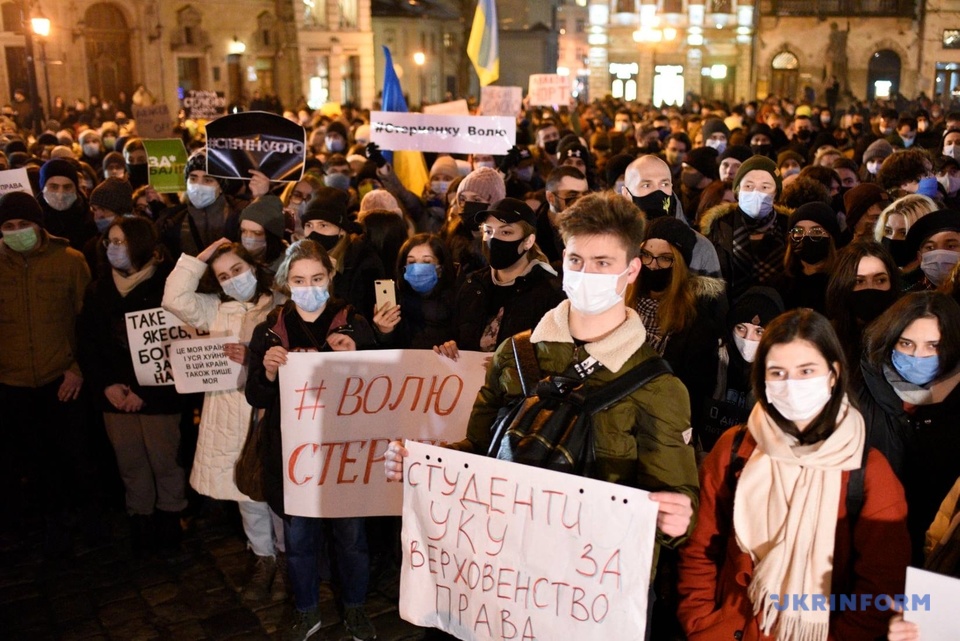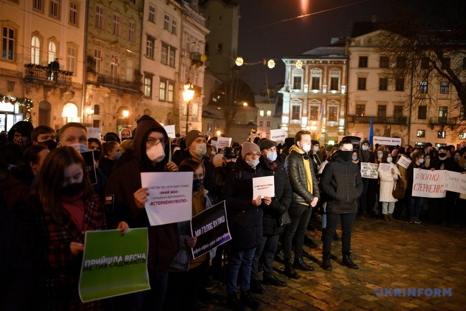 Львовяне вышли на площадь Рынок, чтобы выразить протест против осуждения активиста Сергея Стерненко. Несмотря на то, что после анонса акции прошло несколько часов, на протест собрались сотни горожан, среди них большинство студентов, но есть люди почтенного возраста, те, кто пришли целыми семьями, туристы, представители городского, областного совета и депутаты ВР.