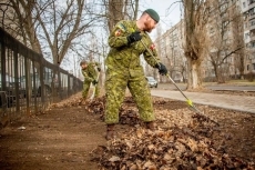 Канадские военные инструкторы решили убрать листья вокруг госпиталя в Николаеве