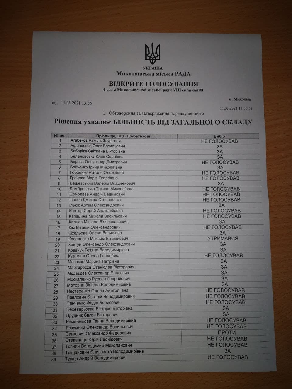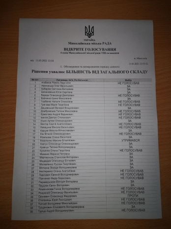 На своей странице в социальной сети Facebook Владислав Чайка опубликовал результаты поименного голосования по данному вопросу. Так, его инициативу поддержали его коллеги по партии «Оппозиционная платформа - За жизнь», представители Европейской Солидарности и Партии Шария. Депутаты от партий «Слуги народа» и «Пропозиции» воздержались от голосования. Мэр Александр Сенкевич единственный, кто проголосовал против внесения данного вопроса в повестку дня.