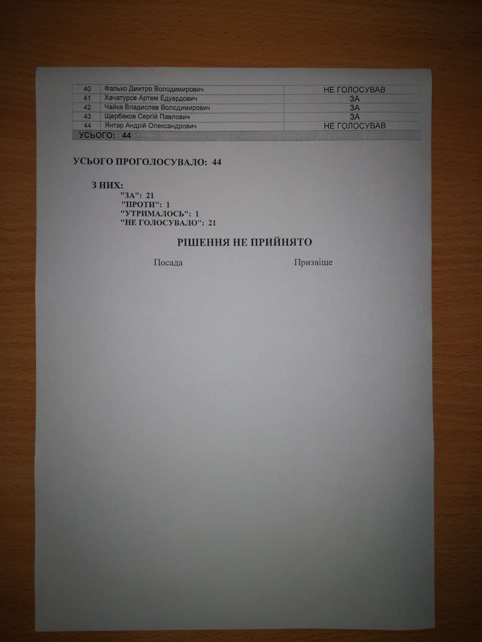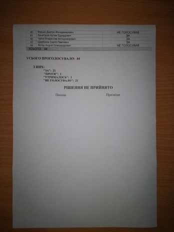 Однако, в ходе голосования только 21 депутат проголосовал «За» предложение коллеги, чего оказалось недостаточно для внесения вопроса в повестку дня и последующего его рассмотрения.