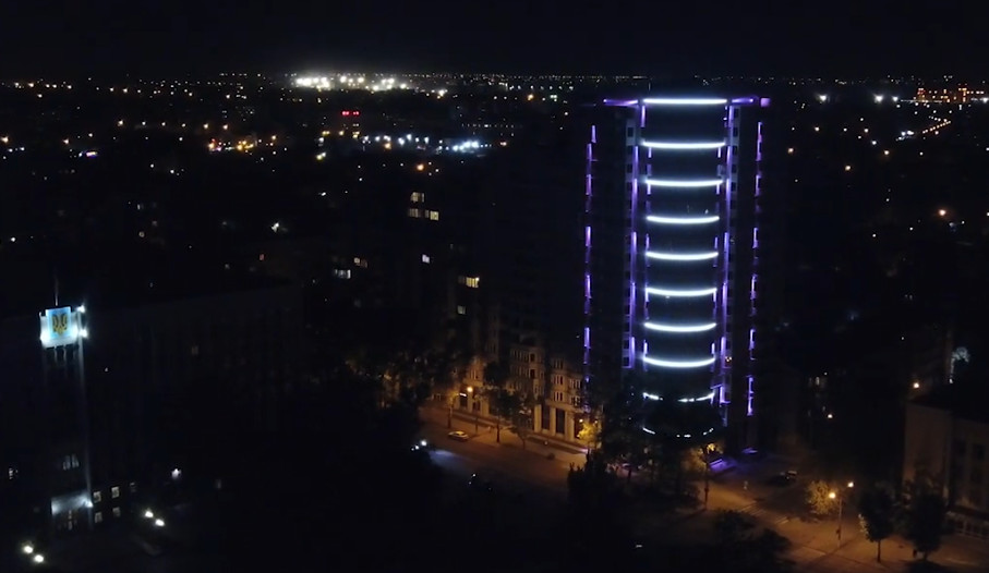 Здание комплекса также оснастили внешней ночной подсветкой. По словам депутата горсовета, с потеплением будет подсвечена вся лицевая сторона здания.