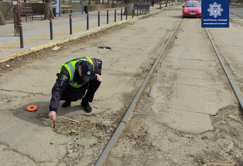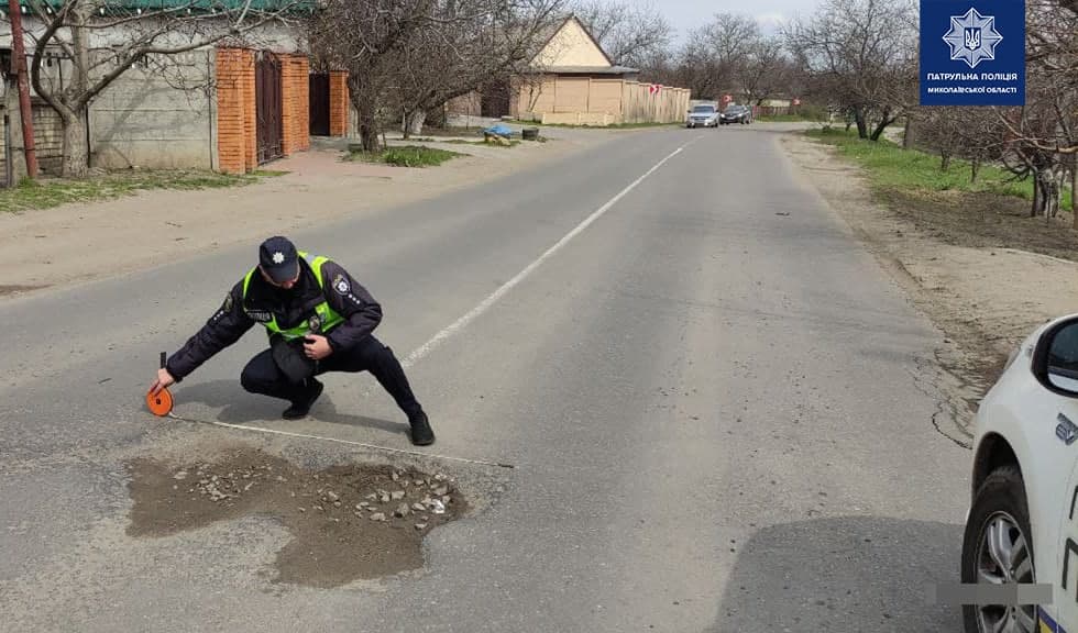Инспекторы отдела безопасности дорожного движения Управления патрульной полиции в Николаевской области фиксируют состояние дорожного покрытия проезжей части, обочин, полос отвода, придорожных территорий, тротуаров, технических средств организации движения и внешнего освещения.