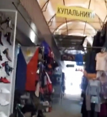 На видео из торгового ряда на рынке видно, что открыты практически все киоски - там торгуют одеждой и обувью. Судя по видеозаписи, покупателей там немного.