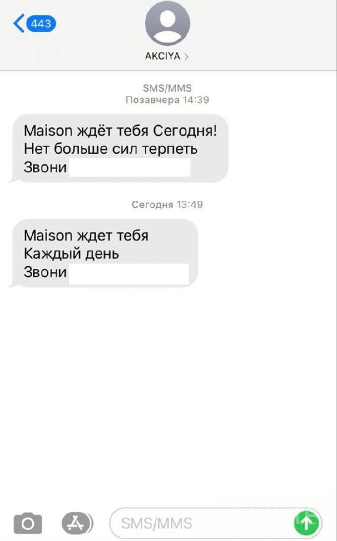 Ресторан рассылает своим клиентам смс-сообщения, в которых приглашает посетить заведение. 19 апреля заведение напомнило о себе так: «Maison ждет тебя каждый день». Журналисты позвонили по указанному номеру, где им предложили посетить ресторан, сообщив, что работают до 23:00.
